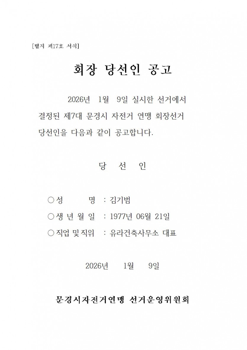- 다음글문경시자전거연맹회장 선거일정 공고 25.12.31